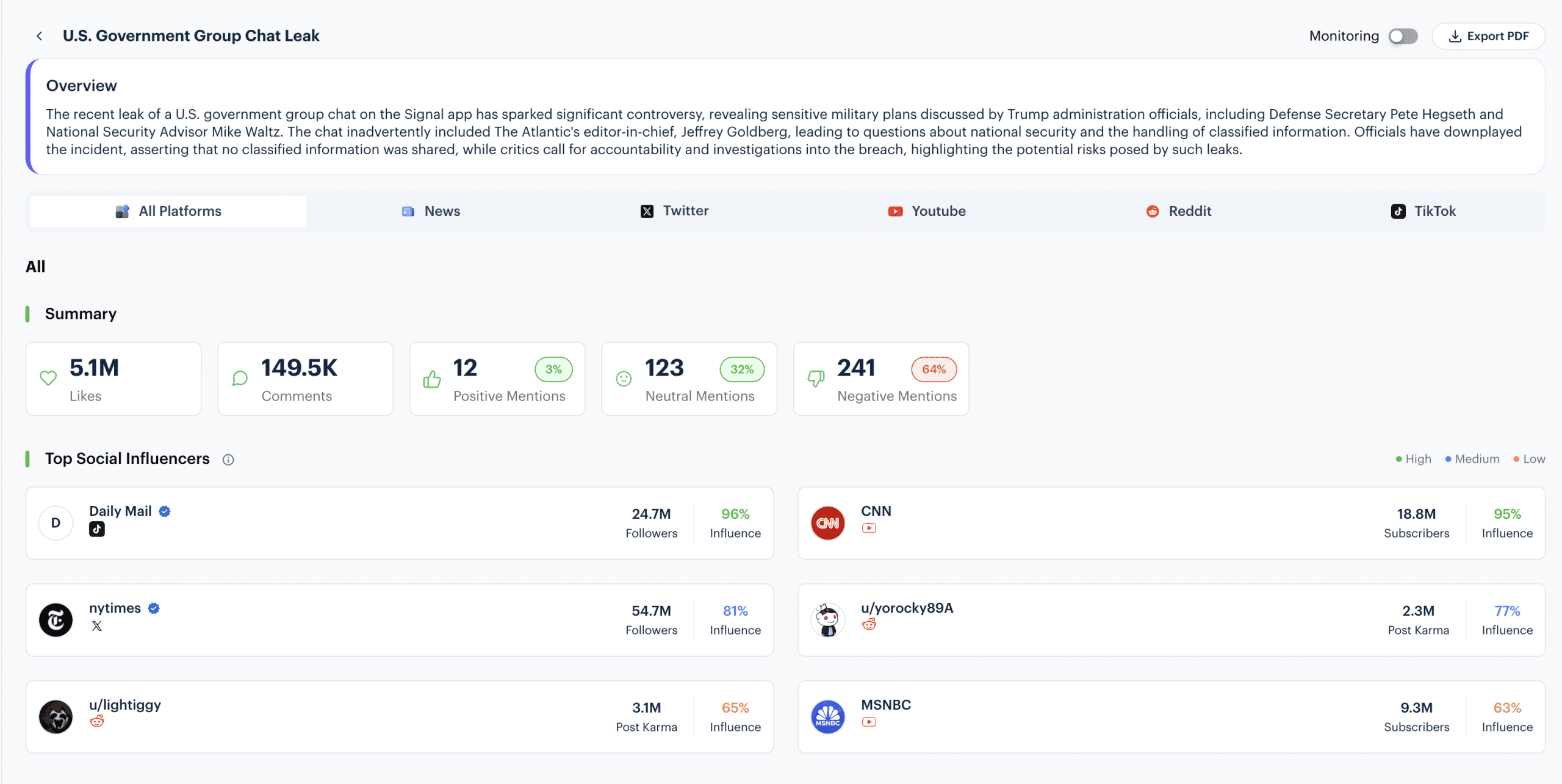 - Get instant notifications for mentions, trends, and sentiment insights.