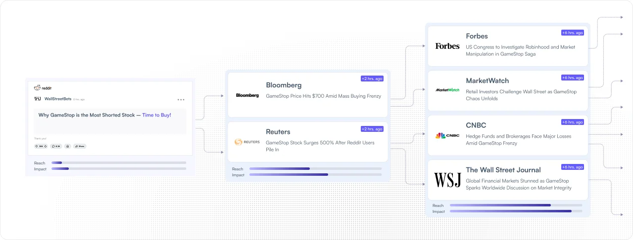 Retrieve and explore comprehensive archived data from thousands of verified news outlets. Understand how stories evolved over time with just a few clicks.